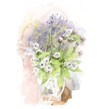 Print from the Impressions series - a botanical drawing in water colors, ink and pencils.